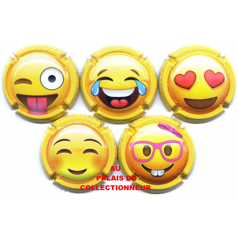 Série de 5, Smiley fond jaune marquée Champagne - Capsules de Champagne - Référencées -