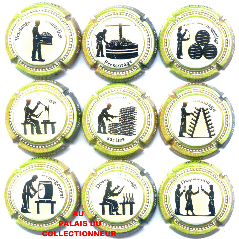 Série de 9, Les étapes de l'élaboration du Champagne - Capsules de Champagne - Nouvelles non Référencées -