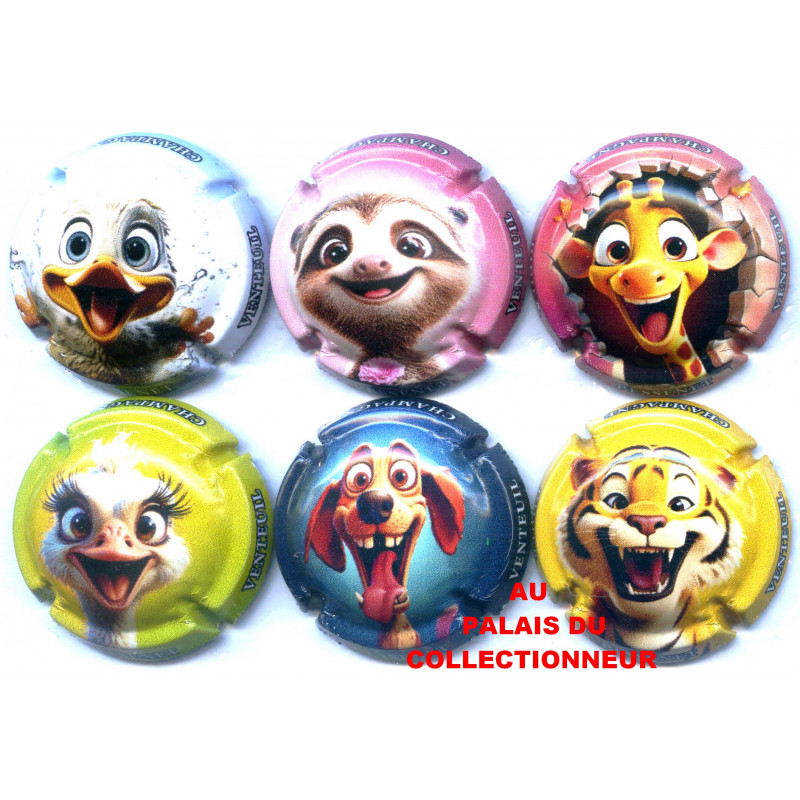 Série de 6 dessins animaux - Capsules de Champagne - Référencées -