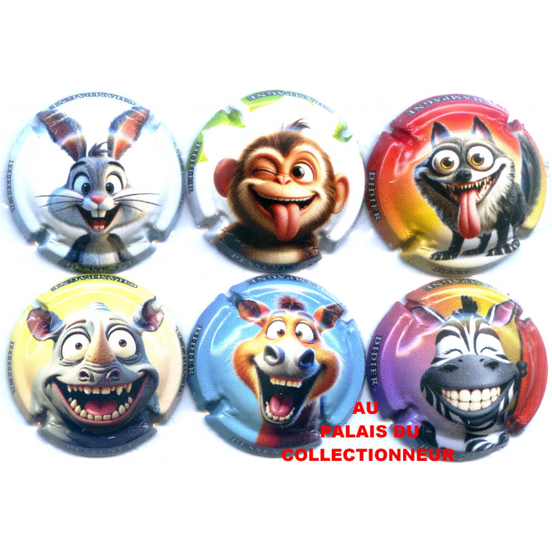 Série de 6 dessins animaux - Capsules de Champagne - Référencées -