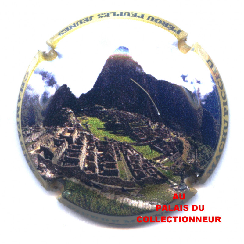 Macchu-Picchu, contour jaune-vert pâle - Capsule de Champagne - Référencée -