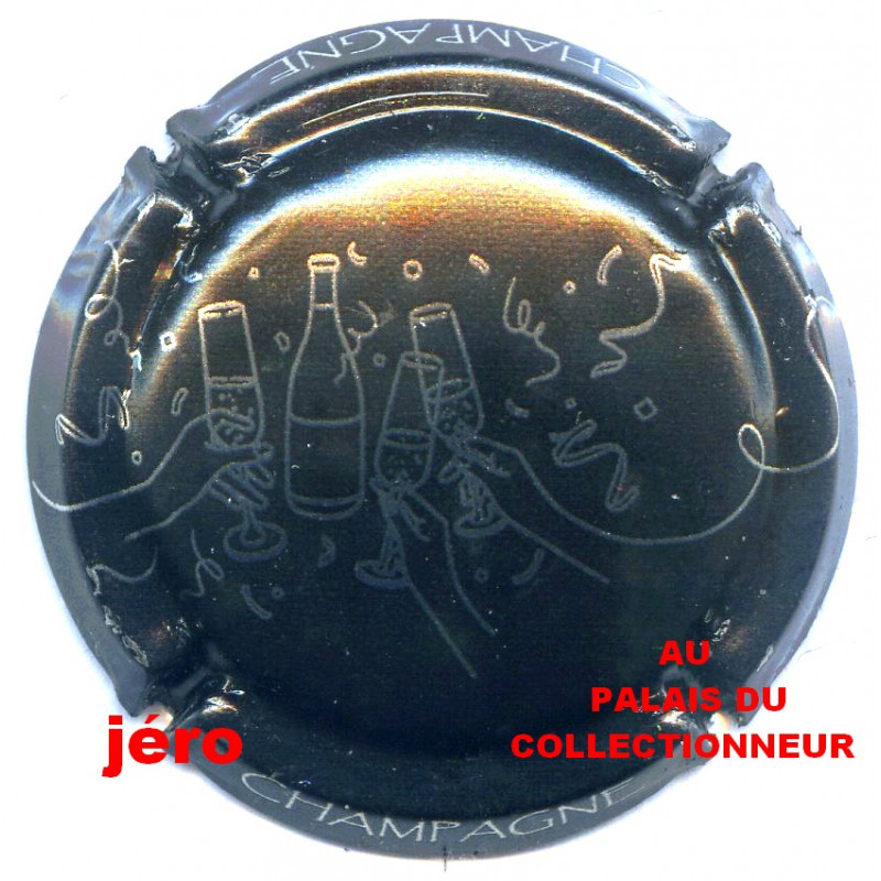 Jéroboam, noir et métal, Fête, mains, flûtes, bouteille, confettis - Capsule de Champagne - Nouvelle Non Référencée -